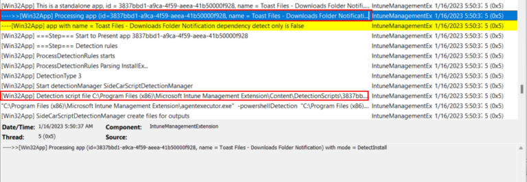If you’re using Win32 apps with more than one detection rule, it’s advantageous to quickly determine which detection rule is failing. We get this information by inspecting the IME log on an affected device, but you need to know what to look for. The Intune Management Extension log is located in %programdata%\Microsoft\IntuneManagementExtension\logs\IntuneManagementExtension.log. It contains tons … Continue reading Troubleshoot Intune Win32Apps with multiple detection rules