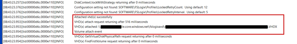 Removing that attribute’s value resolved the issues. Now we understand why FSLogix was creating a VHDX for the user, but when trying to load the user’s hive from UsrClass.dat, it was reporting that it didn’t exist, since it was looking in a network location where no profile existed. The attributes from AD were overriding the FSLogix configuration and creating registry entries for the user profile to point to \\server\share\username, which contained no profile data.