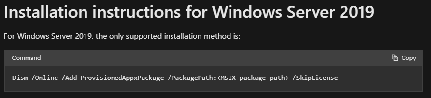 I couldn’t find any specific requirements for the isWVDEnvironment registry value or the WebRTC components on RDS, so I left those components out. For Server 2019, you can’t install the MSIX or use the bootstrapper.exe method. You need to use this method: