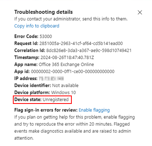 And in the Entra Sign-in logs, you’ll see this for the authentication attempt:
